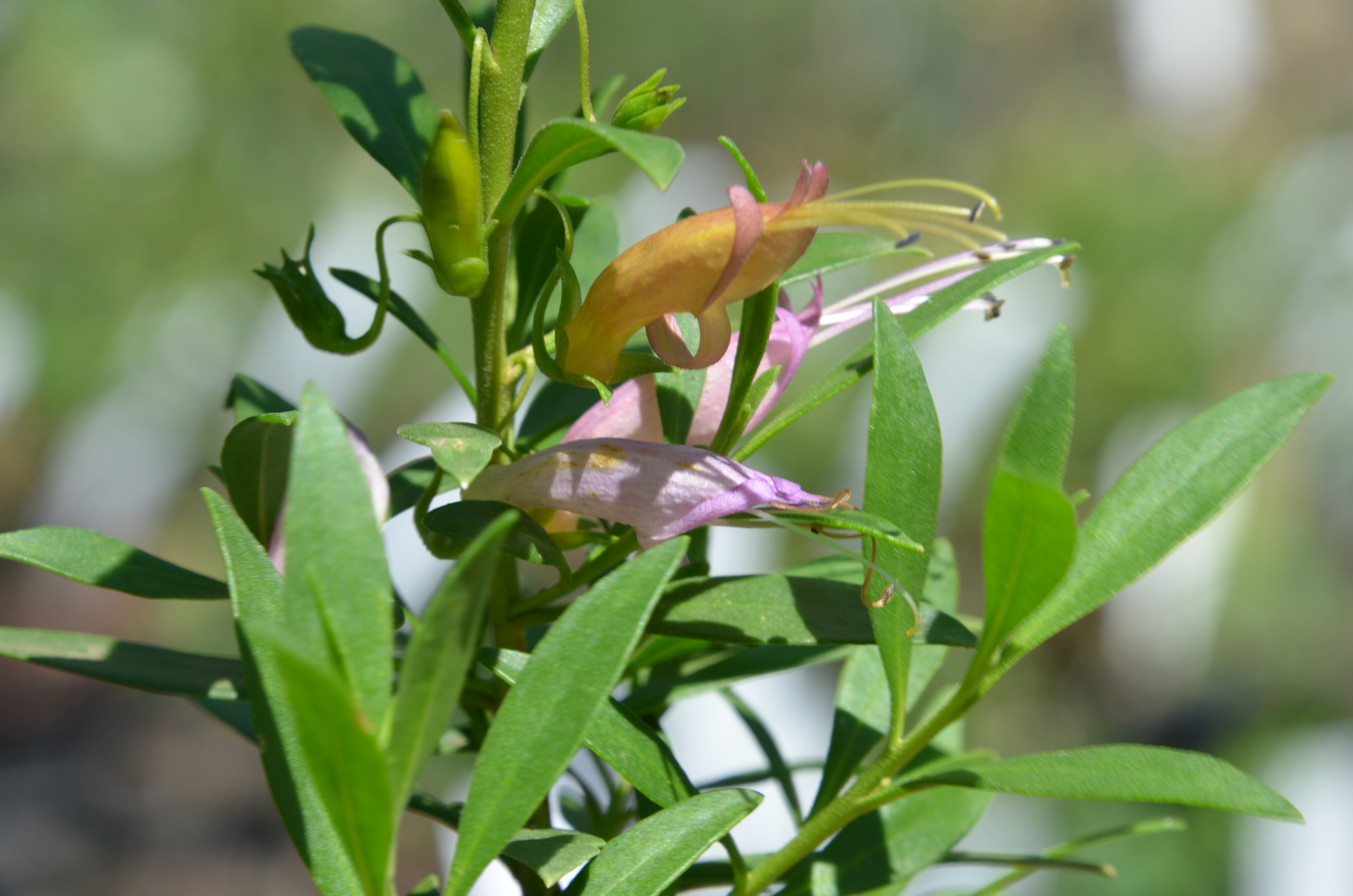 Small shrub to 1mH x 1W with bright green narrow leaves. Buds are orange and the flowers open orange and fade to a delicate pink. Flowers most of year with a flush in spring. Hardy in a warm sunny site with good drainage. Nectar-rich flowers attract birds.